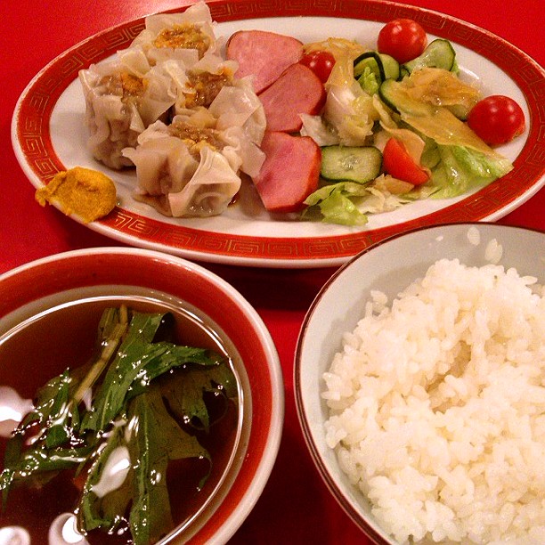 見ての通りの、家庭的な味付けのシュウマイ、付け合わせのキャベツでした。